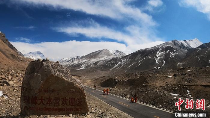 圖為4月3日,在西藏日喀則市定日縣,國測一大隊精密水準(zhǔn)測量工作即將推進至珠穆朗瑪國家公園。 中新社發(fā) 魏軍輝 攝