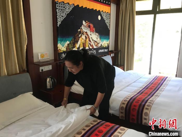 “開辦這間民宿得益于政府的好政策”,次仁德吉介紹,2018年,她通過工行貸款100萬元(人民幣,下同),政府貼息10萬元,開始著手打造這間民宿。2019年5月正式營業(yè)后,政府部門和駐村工作組持續(xù)關(guān)注,幫忙進行線上推廣宣傳,逐漸提升民宿知名度,提高游客入住率。