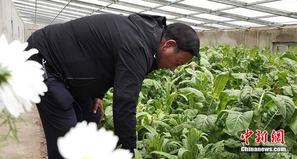 巴珠在察看蔬菜的長勢。旦增努布 攝
