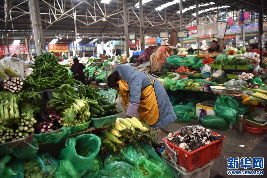 拉薩市藥王山農(nóng)貿(mào)市場(chǎng)蔬菜區(qū),商戶在整理菜品(2019年12月29日攝)。 新華社記者 周錦帥 攝