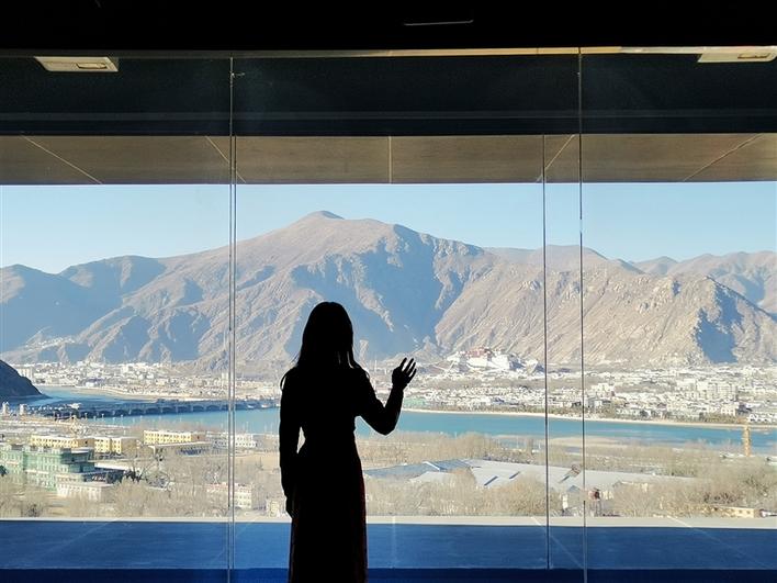 西藏非遺博物館位于拉薩河南岸的慈覺林文創(chuàng)園內(nèi),主體建筑共五層,目前開放參觀的是一、二層主展區(qū),共展出50余項國家級非遺項目——包括天文歷算、藏醫(yī)藥、藏紙和雕版印刷、紡織技藝、傳統(tǒng)服飾等,大家熟悉的唐卡、藏香、牛皮船,在這里也能看到。位于博物館五層的互動體驗區(qū)是整座建筑的一大亮點。這里擁有絕佳的觀景視角,遠(yuǎn)眺布達(dá)拉宮,俯瞰拉薩河谷,壯美的景色讓人流連忘返。