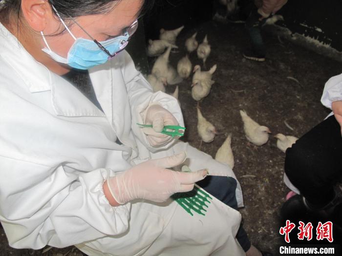 圖為西藏自治區(qū)農(nóng)科院畜牧獸醫(yī)研究所工作人員準備為種雞標號。西藏自治區(qū)農(nóng)科院畜牧獸醫(yī)研究所供圖