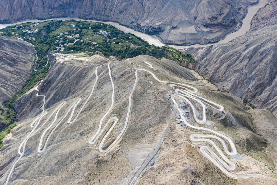 通向西藏昌都市左貢縣怒江峽谷沿岸東壩鄉(xiāng)的公路(2020年9月13日攝,無人機照片)。新華社記者 普布扎西 攝
