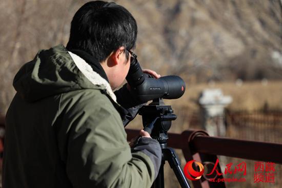 楊樂在拉魯濕地觀測(cè)鳥類情況。 李海霞 攝