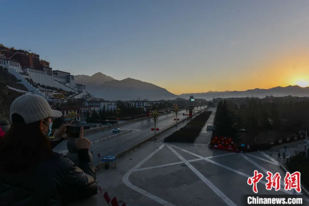 春節(jié)、藏歷新年初一,游客在布達(dá)拉宮觀景臺(tái)等待日出。江飛波 攝