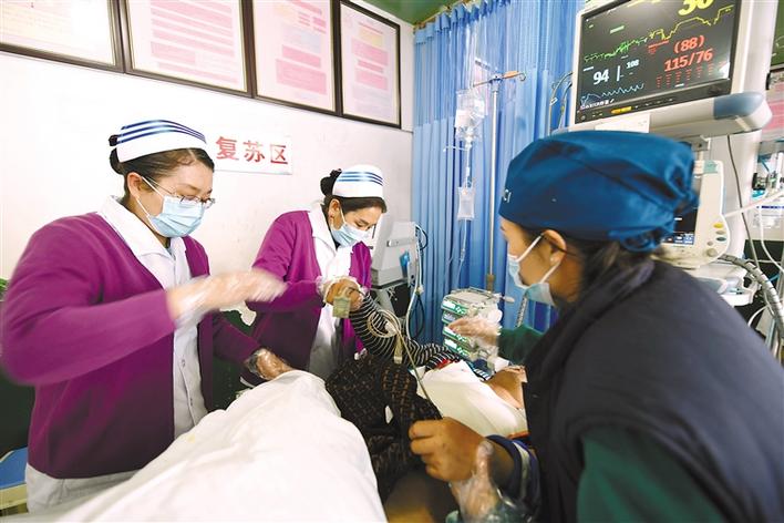 圖為拉薩市人民醫(yī)院醫(yī)護(hù)人員為前來(lái)就診的患者服務(wù)