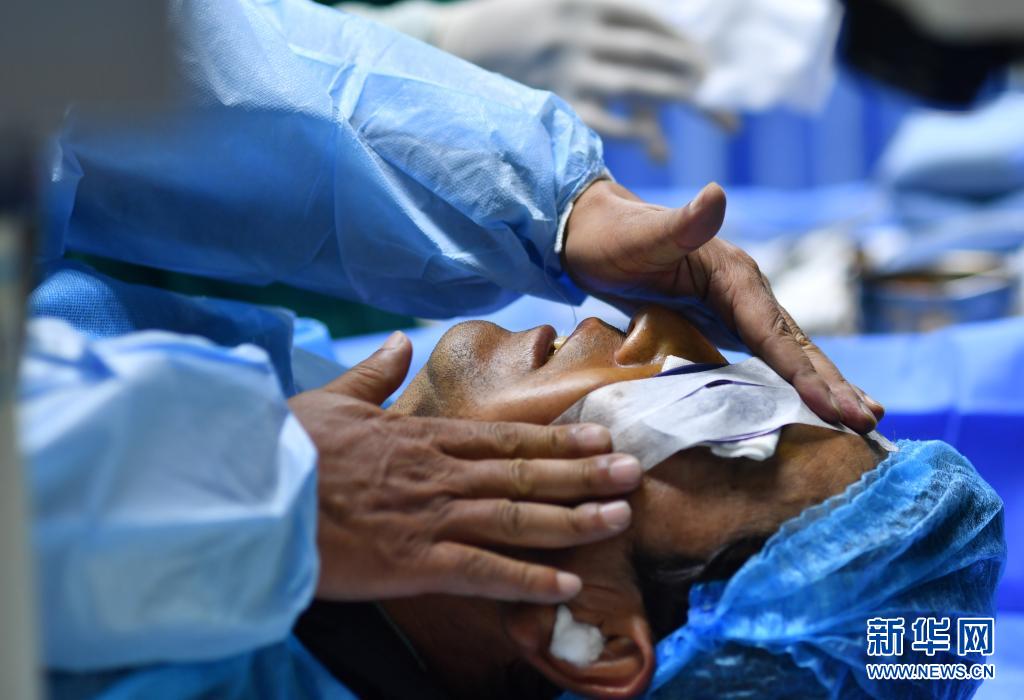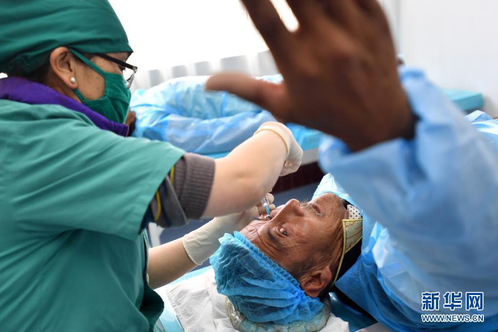3月24日,西藏拉薩光明眼科康復(fù)診療院醫(yī)生在給白內(nèi)障患者實施復(fù)明手術(shù)。新華社記者 覺果 攝