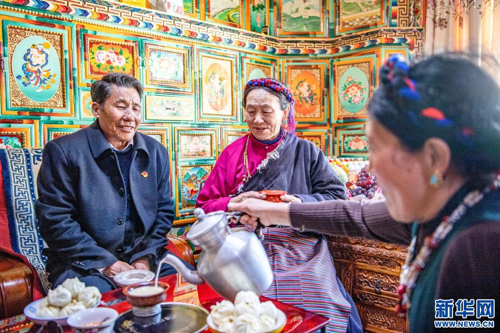 洛松朗加(左二)和家人一起吃飯(2月19日攝)。新華社記者 孫非 攝