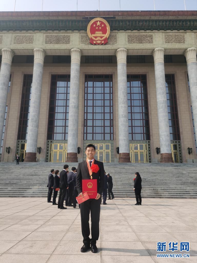 陳洪順榮獲全國(guó)脫貧攻堅(jiān)先進(jìn)個(gè)人稱號(hào)后,在北京人民大會(huì)堂前留影(2月25日攝)。新華社發(fā)