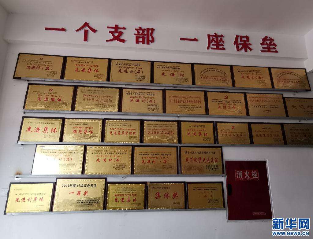 色果拉村村黨支部的榮譽墻(2020年5月12日攝)。新華社記者 薛文獻(xiàn) 攝