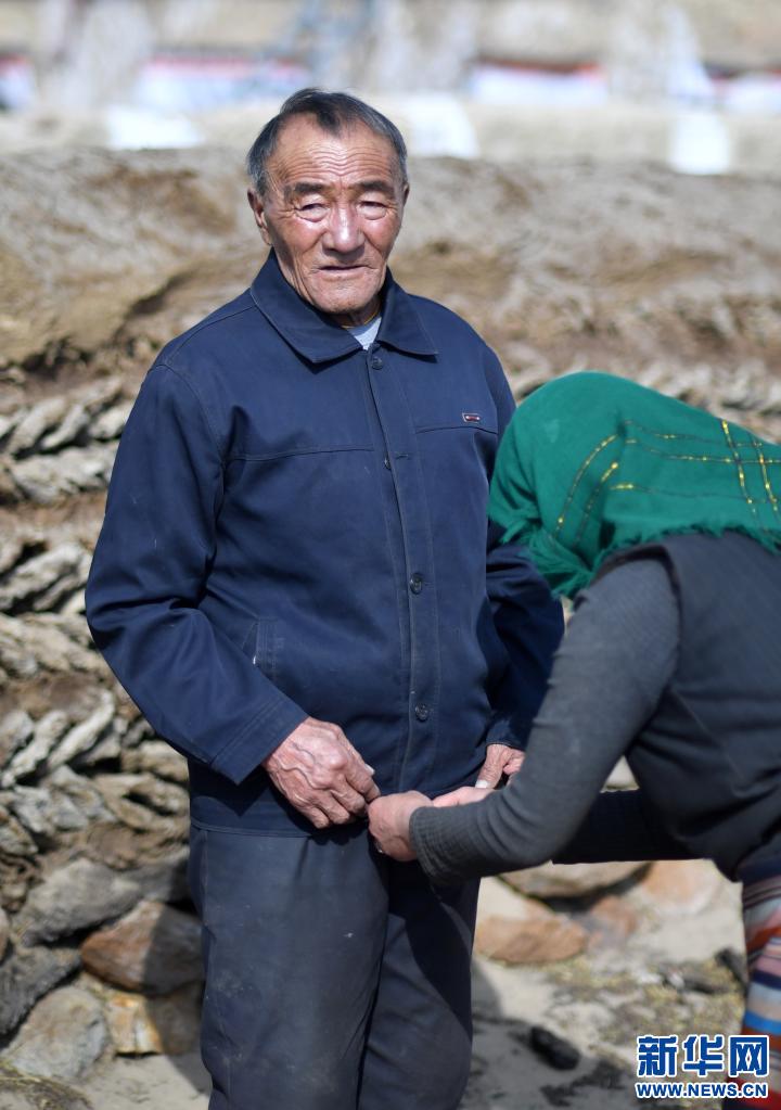 西藏拉薩市當(dāng)雄縣納措鄉(xiāng)甲嘎村的旦達(dá)老人的肖像(4月16日攝)。新華社記者 孫瑞博 攝