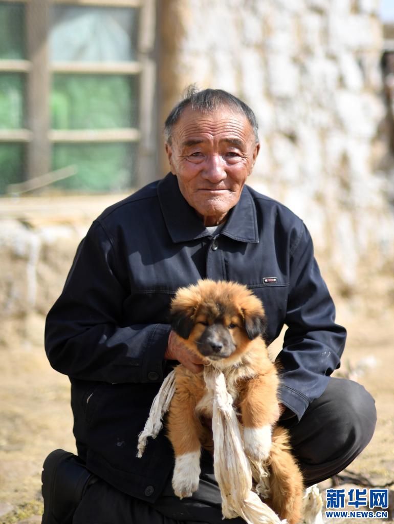 旦達(dá)和他家的小狗(4月16日攝)。新華社記者 覺果 攝