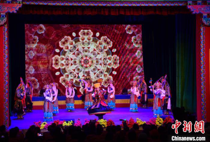 圖為拉薩市城關(guān)區(qū)娘熱民間藝術(shù)團(tuán)帶來(lái)的歌舞《拉薩囊瑪》 貢嘎來(lái)松 攝