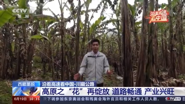 總臺記者 孟湛東:我現(xiàn)在是在扎墨公路沿線的一片香蕉林,墨脫地區(qū)的氣候條件跟西藏其他地方相比有很大的不同。在公路沿線,經(jīng)??梢钥吹较窀收?、檸檬、香蕉等等這樣的熱帶經(jīng)濟(jì)作物。近幾年,扎墨公路貫通了之后,很多游客會駕車,通過公路進(jìn)入到墨脫旅游,所以在沿線就會有很多的蕉農(nóng)砍下自己的香蕉,拿到路邊進(jìn)行銷售。