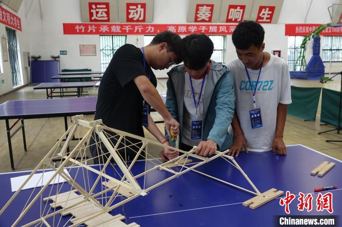 圖為第三屆西藏大學(xué)生結(jié)構(gòu)設(shè)計(jì)競賽比賽現(xiàn)場。冉文娟 攝