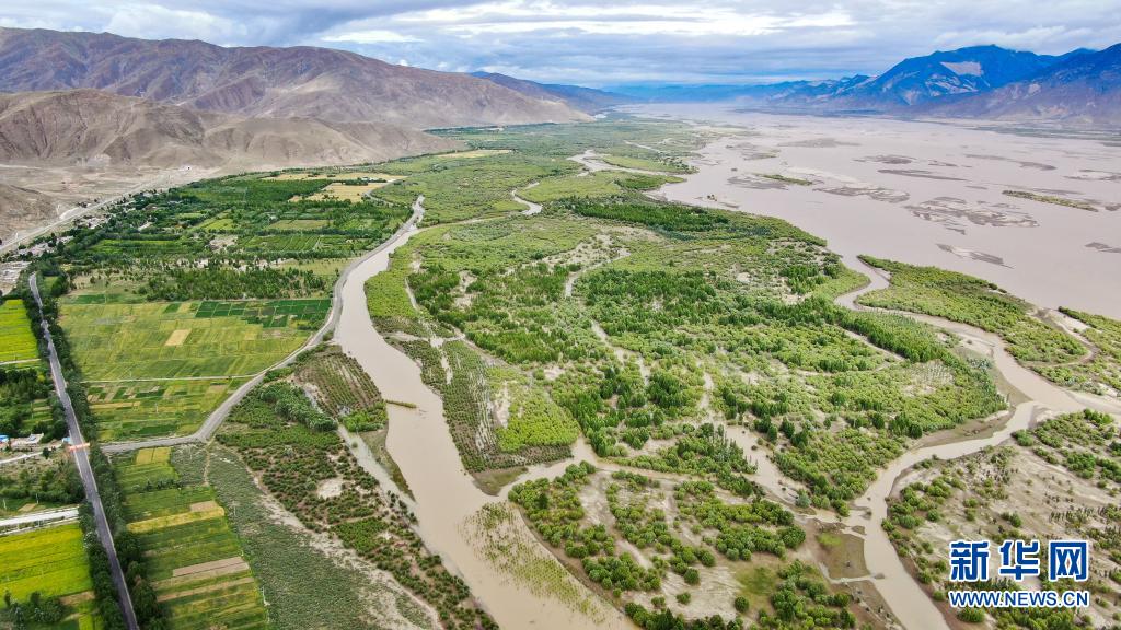 雅魯藏布江山南段公路兩旁的綠色長(zhǎng)廊(7月20日攝,無人機(jī)照片)。新華社記者 晉美多吉 攝