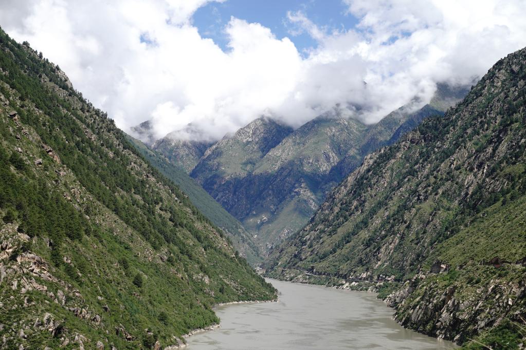 盛夏時(shí)節(jié),走近雅魯藏布江中游的藏木水電站,這里水量豐沛,藍(lán)天白云、漫山青松倒映在碧綠的江水中。
