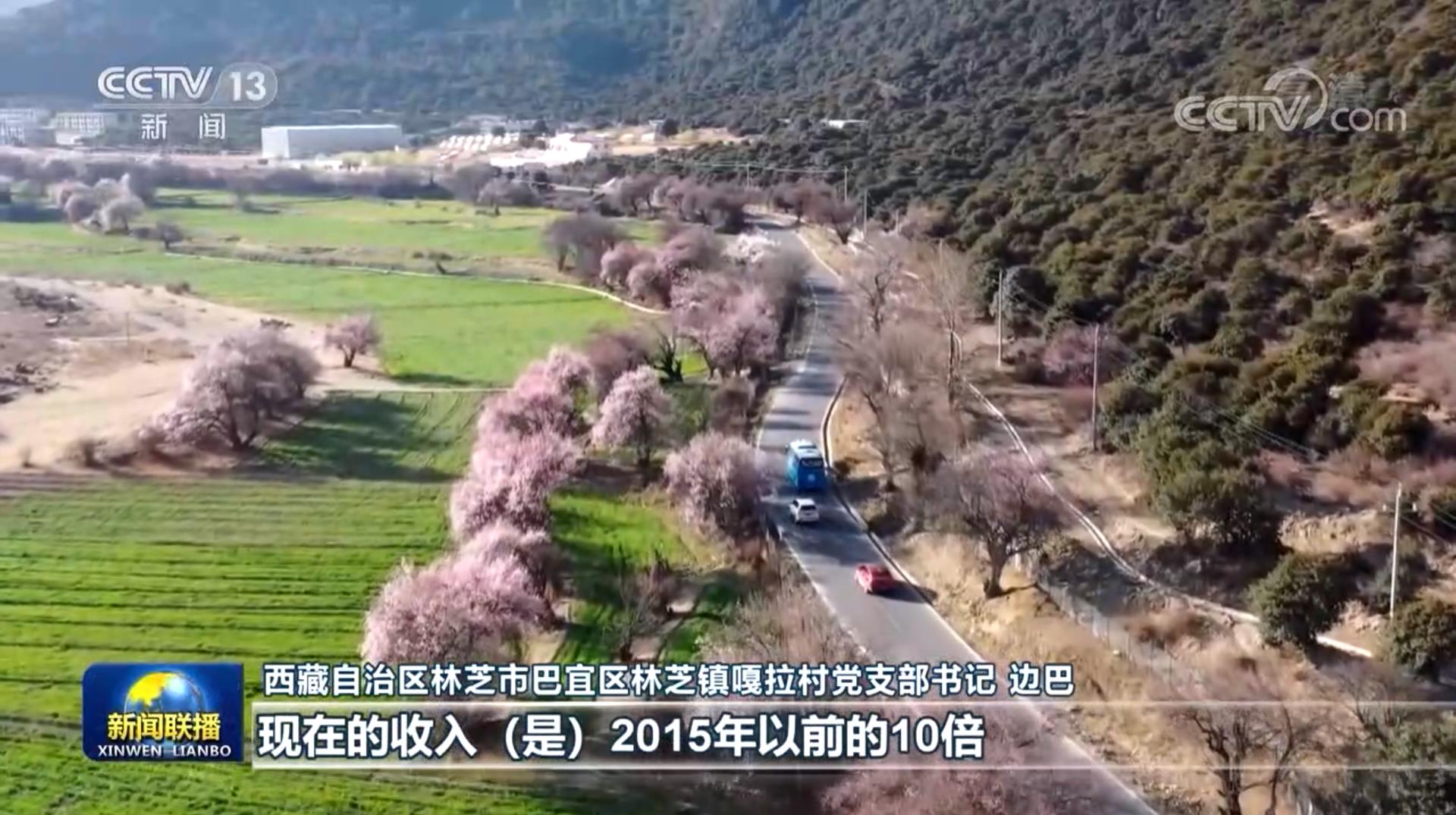 西藏自治區(qū)林芝市巴宜區(qū)林芝鎮(zhèn)嘎拉村黨支部書(shū)記 邊巴:以前,桃樹(shù)(被)群眾砍下來(lái)燒飯,后來(lái),我們修復(fù)生態(tài)。2015年,我們的旅游基礎(chǔ)設(shè)施全方面打造,現(xiàn)在的收入(是)2015年以前的10倍,現(xiàn)在群眾都明白綠水青山就是金山銀山。