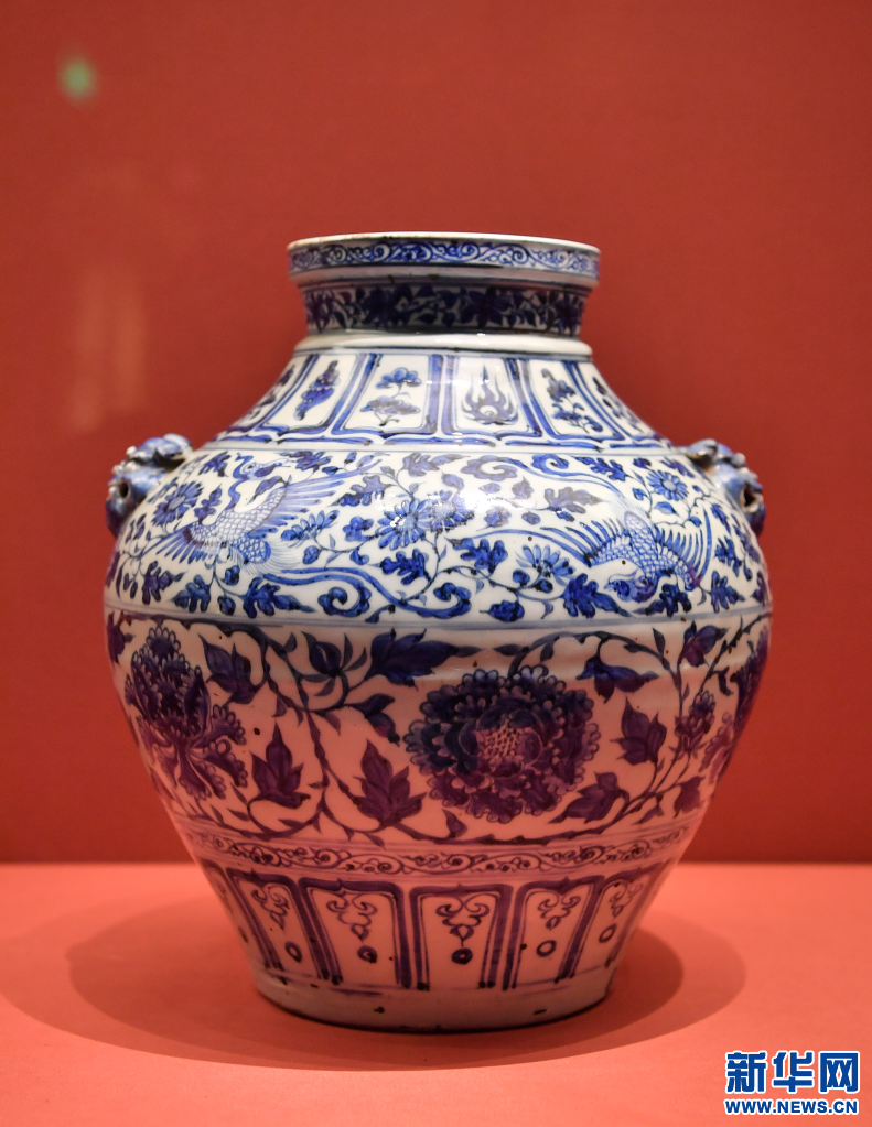 布達拉宮宮藏元代青花鳳穿牡丹紋罐(2021年1月26日攝)新華社記者 晉美多吉 攝