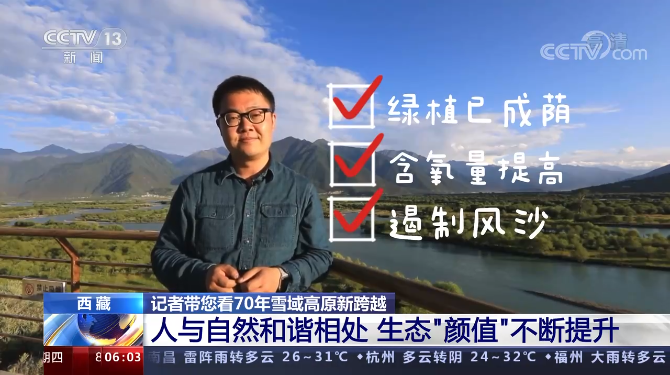總臺(tái)央視記者 馬力:在西藏,超過八成的人口都集中在雅魯藏布江、怒江、拉薩河等“兩江四河”流域。2016年開始,西藏展開了“兩江四河”流域集中連片植樹造林工程,涉及全區(qū)所有地市。經(jīng)過5年的根植,西藏大江大河沿線已經(jīng)被31萬畝的綠植環(huán)繞,在70多萬名生態(tài)護(hù)林員精心呵護(hù)下,綠植已經(jīng)成蔭,空氣含氧量提高了,風(fēng)沙也得到了有效的遏制。