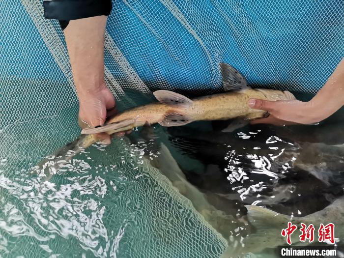 圖為多布水電站增殖放流站工作人員對(duì)魚(yú)進(jìn)行性腺發(fā)育檢查。