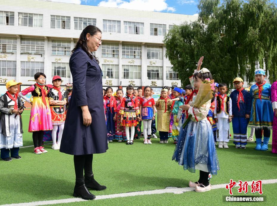 9月10日是第37個(gè)教師節(jié),西藏拉薩市第一小學(xué)舉行了以“譜團(tuán)結(jié)新篇 育桃李芬芳 感教師恩情”為主題的慶?;顒?dòng)。學(xué)生以敬禮、獻(xiàn)花、擁抱等方式,表達(dá)對(duì)老師的感恩之情。中新社記者 貢嘎來(lái)松 攝