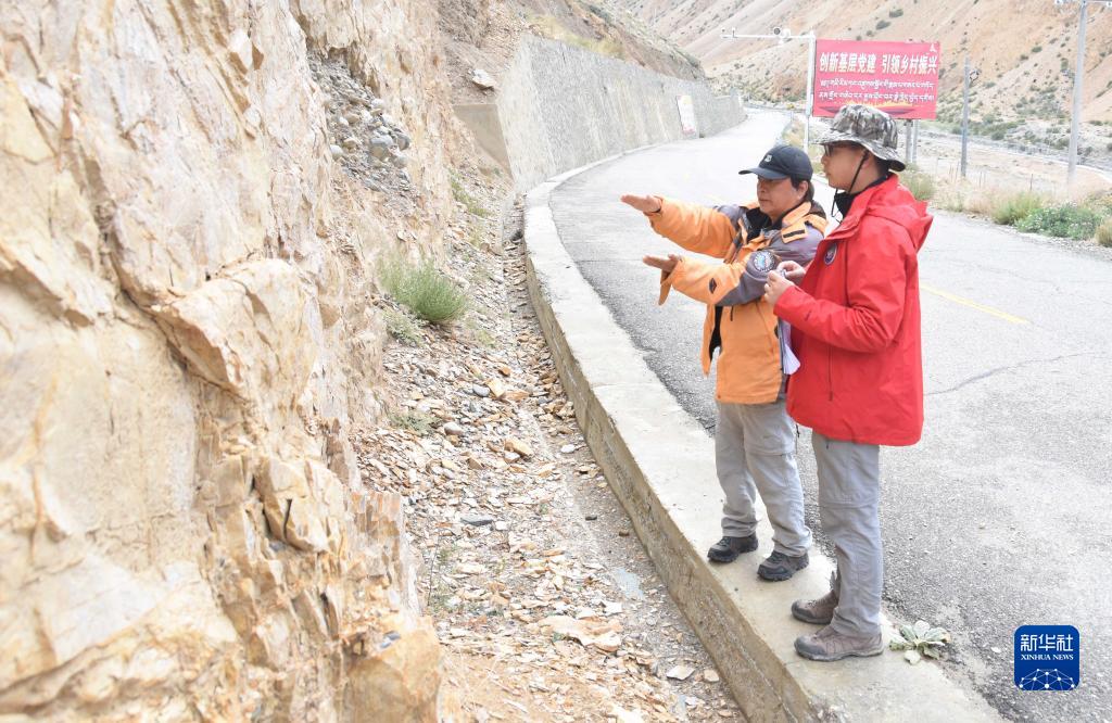 9月9日,在西藏阿里地區(qū)內(nèi)的喜馬拉雅山脈,中科院地理科學(xué)與資源研究所客座教授李渝生(左)和年輕的科考隊員觀察地貌。新華社記者 杜剛 攝