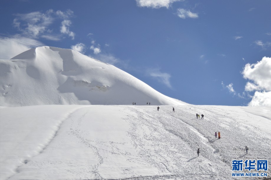 圖為游客攀爬廓瓊崗日冰川(9月14日攝)。新華網(wǎng) 貢桑央吉攝(實(shí)習(xí)生)