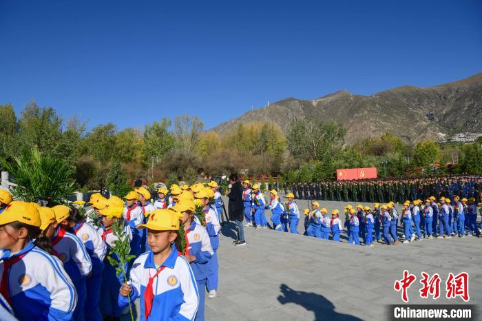 現(xiàn)場,西藏各族少年兒童放聲獻唱《我們是共產(chǎn)主義接班人》,在深情的《獻花曲》中,禮兵抬起花籃,緩步走向烈士紀(jì)念碑,將花籃擺放在紀(jì)念碑基座上。西藏自治區(qū)領(lǐng)導(dǎo)仔細整理花籃緞帶后,和各族各界群眾代表一起繞行紀(jì)念碑一周,深切緬懷為西藏和平解放、民主改革和社會主義現(xiàn)代化建設(shè)建立不朽功勛的革命先烈。