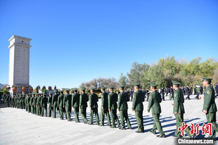 秋日的拉薩碧空如洗,松柏環(huán)繞的拉薩烈士陵園莊嚴(yán)肅穆,藍天映襯下烈士紀(jì)念碑巍峨聳立。9時30分,西藏自治區(qū)領(lǐng)導(dǎo)和各族各界群眾代表齊聲高唱《中華人民共和國國歌》。隨后,全場肅立,向烈士默哀。
