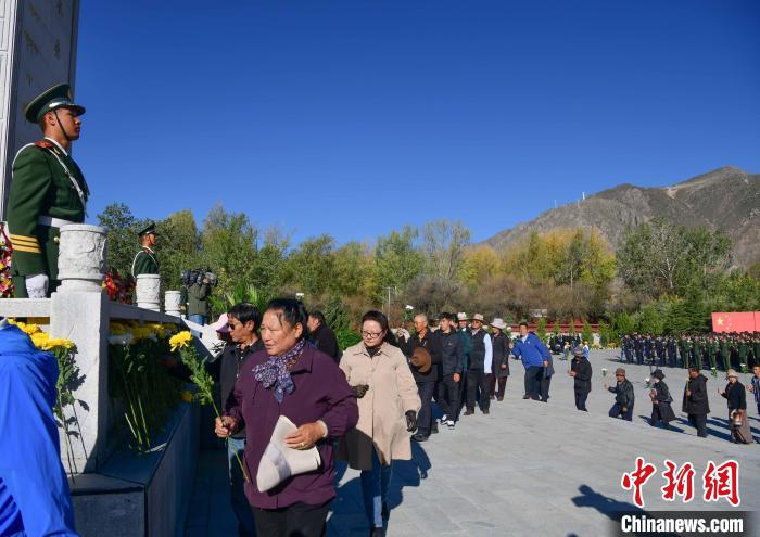 圖為9月30日,在西藏自治區(qū)拉薩市烈士陵園,干部群眾向革命烈士紀(jì)念碑獻花。貢嘎來松 攝