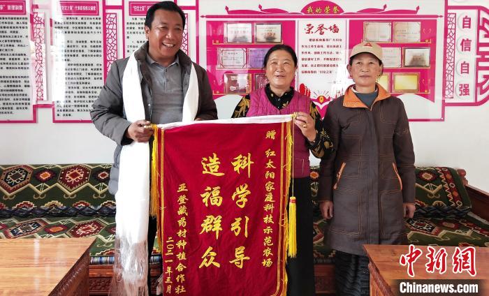 圖為基層合作社負責人向米林家庭農(nóng)場贈送錦旗。平措旺青供圖