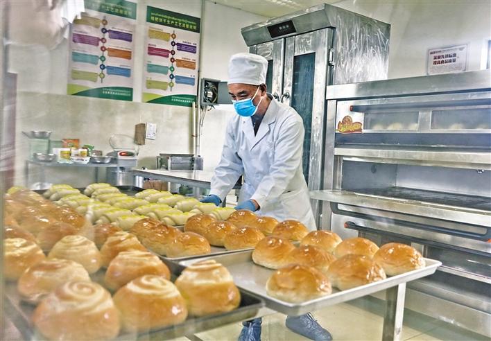 昌都市芒康縣峨江優(yōu)質青稞種植基地農牧民合作社工人在車間生產線上擺放青稞產品。丹增群培 唐斌 攝
