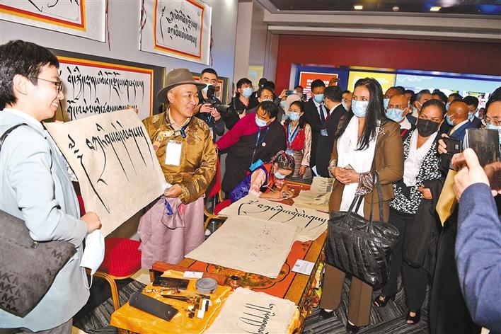 清朝道光皇帝冊(cè)封十一世達(dá)賴?yán)锝饍?cè)、《中央人民政府和西藏地方政府關(guān)于和平解放西藏辦法的協(xié)議》等一件件歷史文物,充分證明了西藏自古以來就是祖國不可分割的一部分。藏文書法、傳統(tǒng)手工藝和酥油茶等高原飲食文化,充分展示了西藏與祖國各地在漫長歷史長河中的各民族廣泛交往、全面交流、深度交融。