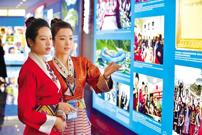 一幅幅精美絕倫的照片、一幀幀生動(dòng)直觀的視頻畫面、一個(gè)個(gè)獨(dú)特壯觀的實(shí)物模型、一次次活潑有趣的互動(dòng)展示,全面、立體、生動(dòng)地向中外嘉賓展示了西藏和平解放70年來經(jīng)濟(jì)社會(huì)發(fā)展的歷史性成就,展示了中國共產(chǎn)黨團(tuán)結(jié)帶領(lǐng)西藏各族人民創(chuàng)造了彪炳千秋、利澤萬代、亙古未有的歷史功績。