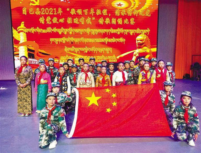 圖為崗巴縣舉辦的詩(shī)歌朗誦比賽現(xiàn)場(chǎng)。崗巴縣龍中鄉(xiāng)小學(xué)供圖