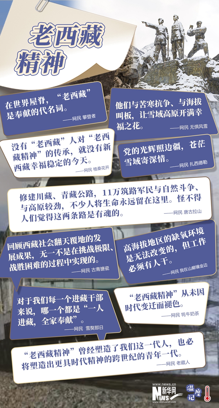 此后的幾十年間,一批又一批、一代又一代援藏干部、駐藏官兵踏上世界屋脊,扎根雪域高原,和當(dāng)?shù)厝罕娨坏?,推?dòng)西藏各項(xiàng)事業(yè)又快又好發(fā)展,讓千年雪域高原變了樣,也賦予“老西藏精神”更為豐富的時(shí)代內(nèi)涵?!吧谶@里很脆弱,生命在這里也很頑強(qiáng)。”網(wǎng)民們在社交平臺(tái)上表達(dá)對雪域高原心向往之的同時(shí),更不忘歌頌歷久彌新的“老西藏精神”。歷經(jīng)時(shí)代的變遷,這種精神正在感召并鼓舞更多人,扎根邊疆,造福西藏,讓那里的山水永遠(yuǎn)碧藍(lán)、綺麗,讓那里的土地永遠(yuǎn)充滿希望、幸福花開。(文字:徐可 海報(bào)設(shè)計(jì):王曄)