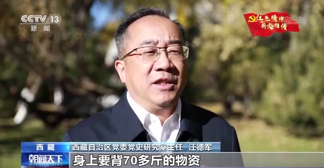 西藏自治區(qū)黨委黨史研究室主任 汪德軍:進(jìn)藏部隊(duì)每一個(gè)干部戰(zhàn)士身上要背70多斤的物資,徒步走進(jìn)西藏。在翻越西藏大山大河過(guò)程中,干部戰(zhàn)士克服了重重困難,一路為西藏老百姓看病送藥,讓我們西藏老百姓首先認(rèn)識(shí)了解放軍,認(rèn)識(shí)了共產(chǎn)黨。