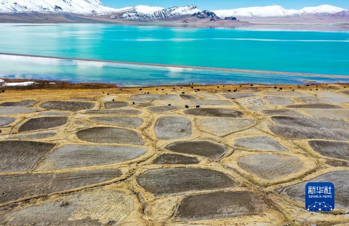 西藏自治區(qū)那曲市尼瑪縣當(dāng)穹錯湖畔的農(nóng)田(2020年4月30日無人機(jī)拍攝)。新華社記者 田金文 攝