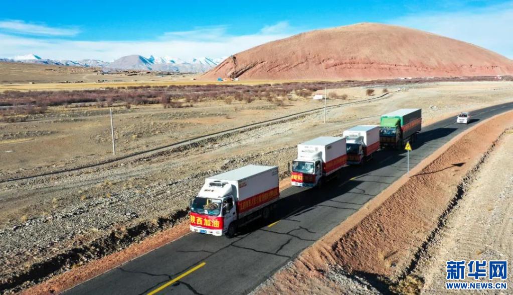 1月7日上午,4輛披著“陜西加油”橫幅的貨車(chē)滿(mǎn)載著防瘟香囊、鮮羊肉、礦泉水等援助物資,從西藏阿里地區(qū)發(fā)車(chē)駛向陜西省,為三秦大地送去雪域高原的祝福。