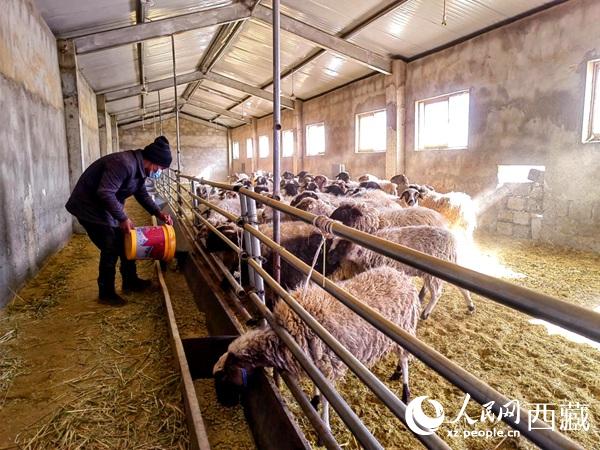 大寒時節(jié),狂風(fēng)呼嘯。在平均海拔4500多米的西藏日喀則市康馬縣涅如堆鄉(xiāng)藏細(xì)綿羊育肥農(nóng)牧民專業(yè)養(yǎng)殖合作社(簡稱“合作社”),牧民占堆正忙著給上千只羊投喂飼料。他笑著告訴記者:“自從我們這兒開始人工種草后,就建立了合作社,羊統(tǒng)一養(yǎng)在合作社里,冬天再也不用去很遠(yuǎn)的地方放牧了,日子也比以前過得好了。”