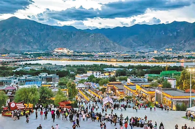 夜色漸濃,位于拉薩河畔寶瓶山上的文成公主劇場,被成片的火燒云染成了耀眼的橙,熙攘人潮,暮色流光,劇場下方的慈覺林藏院風(fēng)情街更是人潮涌動。近年來,隨著冬季旅游政策的不斷推進(jìn),有效促進(jìn)了西藏全季、全時旅游的發(fā)展,而處于夏季旅游黃金時期的西藏旅游則更加火爆。作為西藏文化旅游的靚麗名片,《文成公主》實景劇引來了更多游客前來觀看。