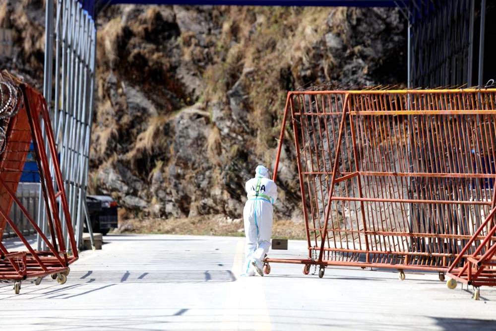 執(zhí)勤點(diǎn)民警正在打開友誼橋阻攔門。索朗次仁攝
