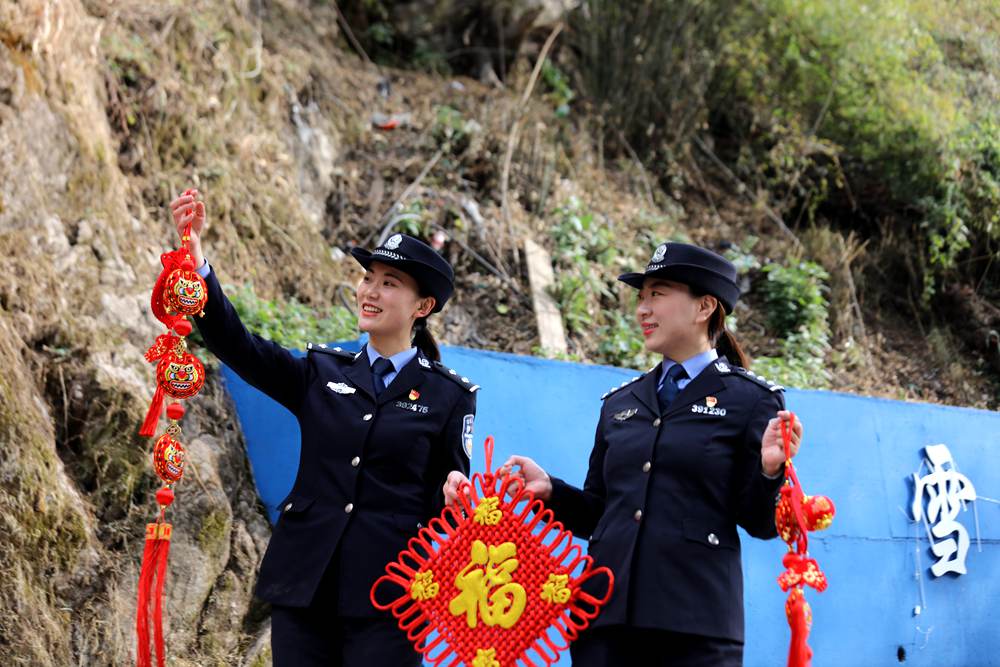女警察拿著福字準(zhǔn)備去裝扮宿舍過年。索朗次仁攝
