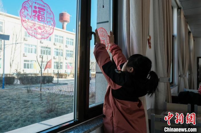 圖為戍邊民警的孩子在貼新年窗花。 江飛波 攝
