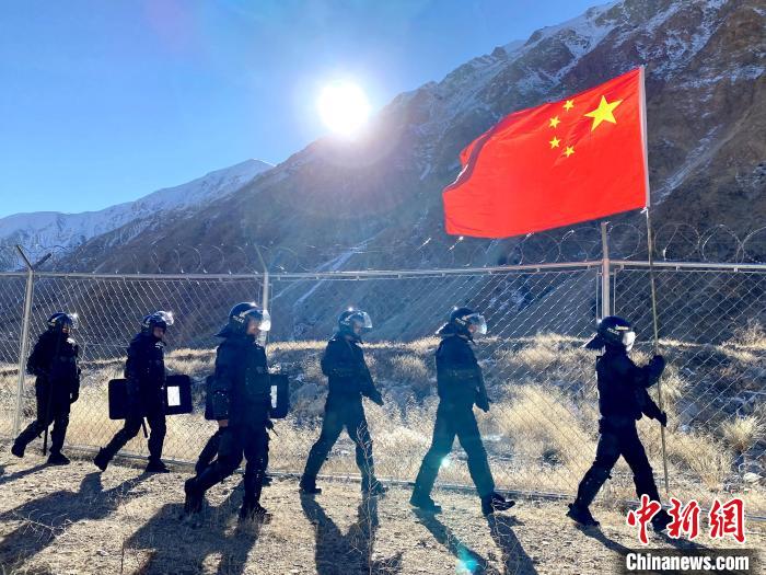 圖為普蘭邊檢站民警在邊境國(guó)門(mén)巡邏?!「駸?攝