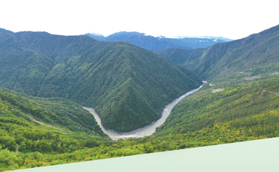 雅魯藏布江在林芝市內(nèi)轉(zhuǎn)彎向南,滾滾江水在高聳的喜馬拉雅山脈上穿鑿出一個(gè)“缺口”。在米林縣、墨脫縣境內(nèi),四五百公里的長(zhǎng)度卻有著3000多米的高度落差,在這里形成了又深又長(zhǎng)的雅魯藏布大峽谷。這一區(qū)域比同緯度其他區(qū)域氣候更濕潤(rùn),形成了茂密的原始森林。