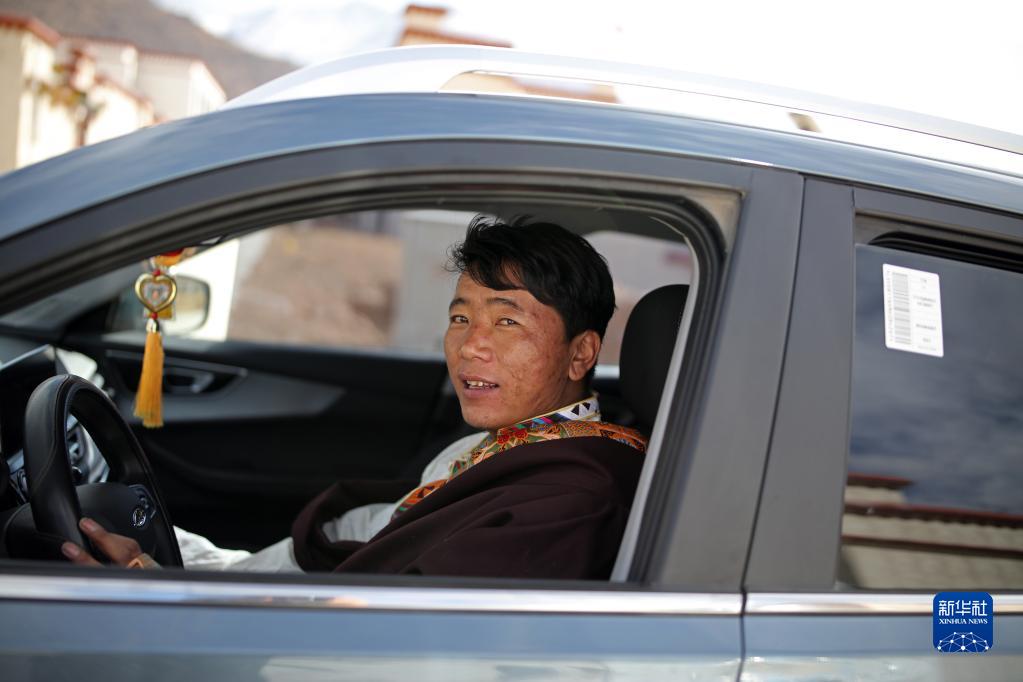 搬遷牧民叢美開著自己新買的汽車(2月28日攝)。新華社記者 姜帆 攝