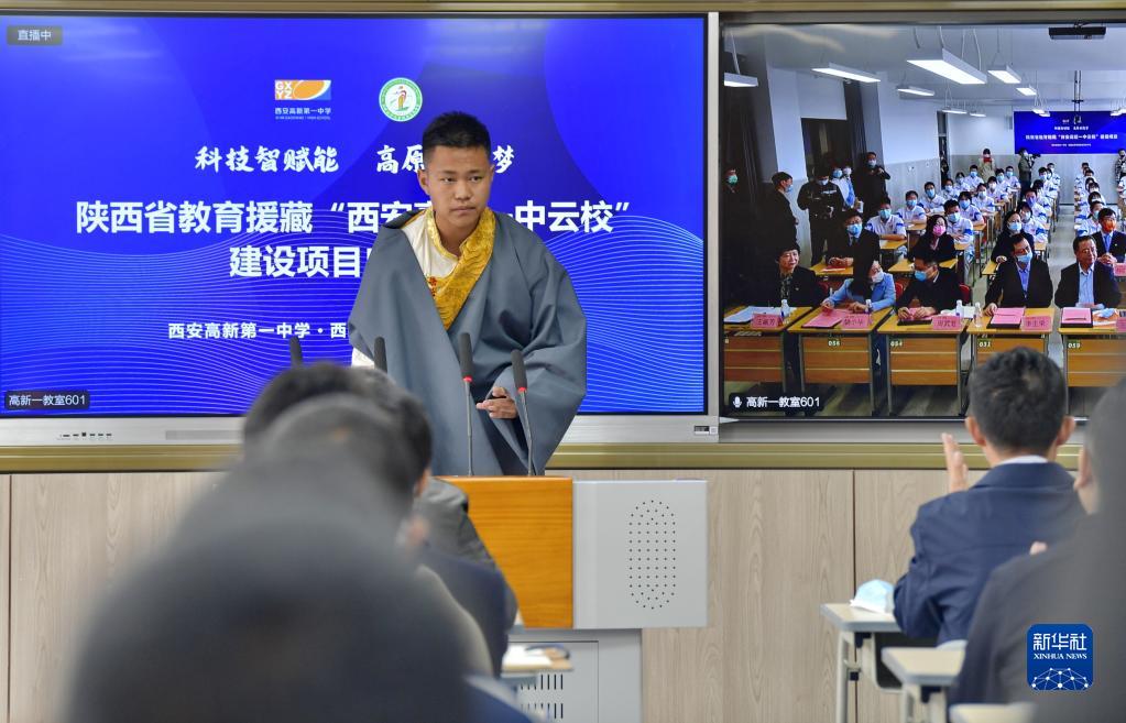 當日,陜西省教育援藏“云?!苯ㄔO(shè)項目正式啟動。陜西省西安高新第一中學和西藏拉薩阿里地區(qū)高級中學結(jié)成“對子”,借助5G網(wǎng)絡開展教學教研互動,助力提升教育水平。