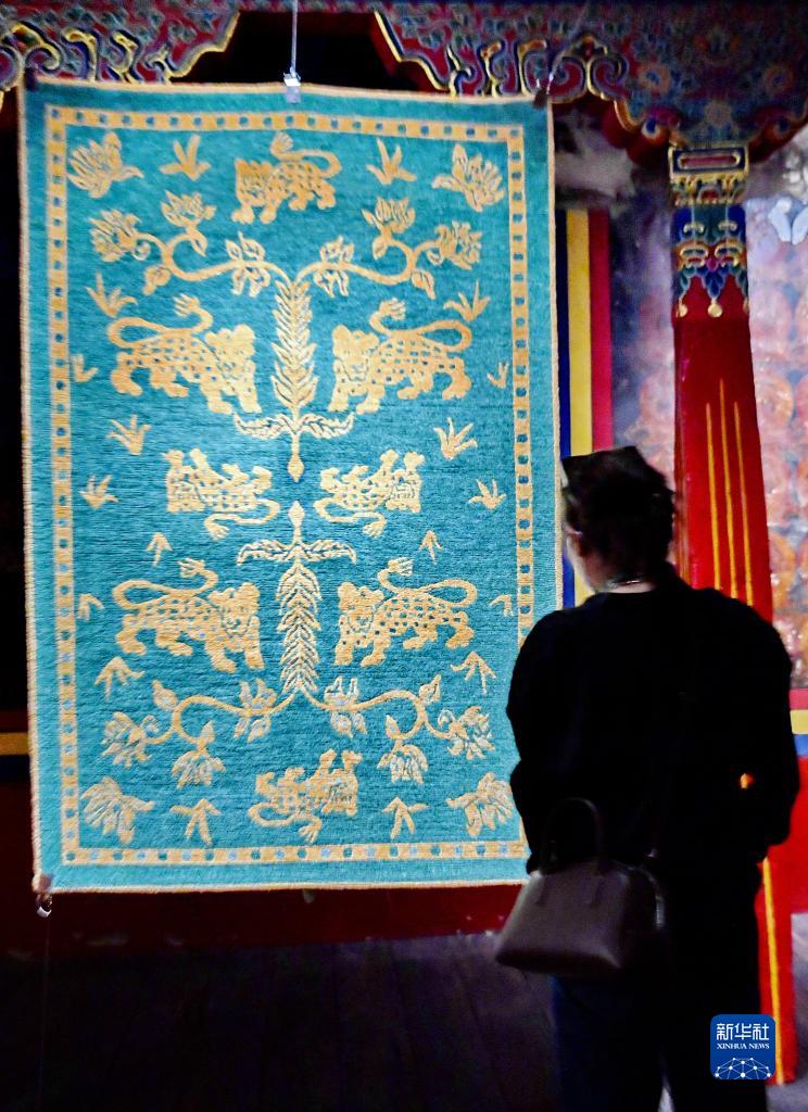 當日,名為“智慧和無畏”的“虎毯”展覽在拉薩吉本崗藝術(shù)中心展出。西藏的非遺工作者根據(jù)古代藏毯藏品重新挖掘,整理了以“虎”為主題的圖案,設計制作了本次展覽作品。本次展覽展出20余件各具特色的藏毯藝術(shù)作品,展覽將持續(xù)到5月初。